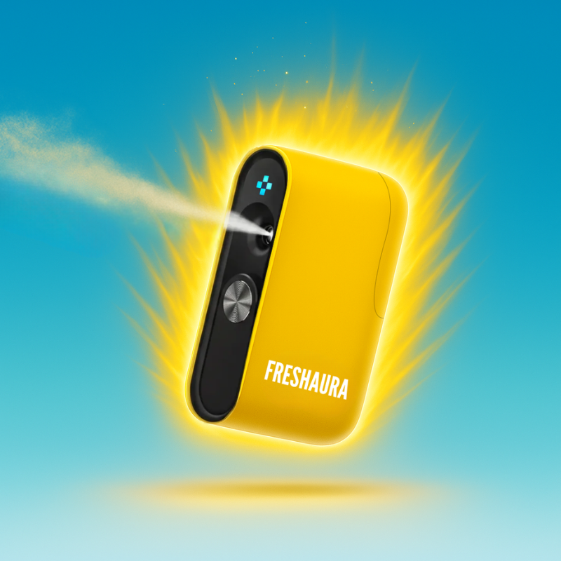 FreshAura diffuse une brume ultrafine qui neutralise les bactéries responsables des mauvaises odeurs.